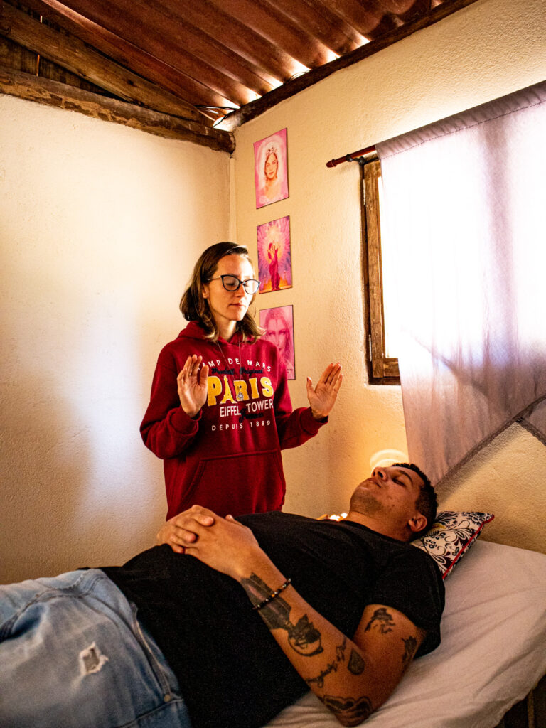 O Reiki é uma técnica de cura energética que visa harmonizar o corpo e a mente, utilizando a transmissão de energia através das mãos do terapeuta para o paciente. Acredita-se que a energia vital (Ki ou Chi) flui livremente pelo corpo, e o Reiki ajuda a desbloquear ou equilibrar essa energia, estimulando a cura natural. Durante a sessão, o paciente permanece deitado, enquanto o terapeuta impõe as mãos, sem tocar no paciente, em diferentes pontos do corpo. O Reiki é usado para reduzir o estresse, aliviar dores, melhorar a saúde mental e emocional, e promover um estado geral de bem- estar.